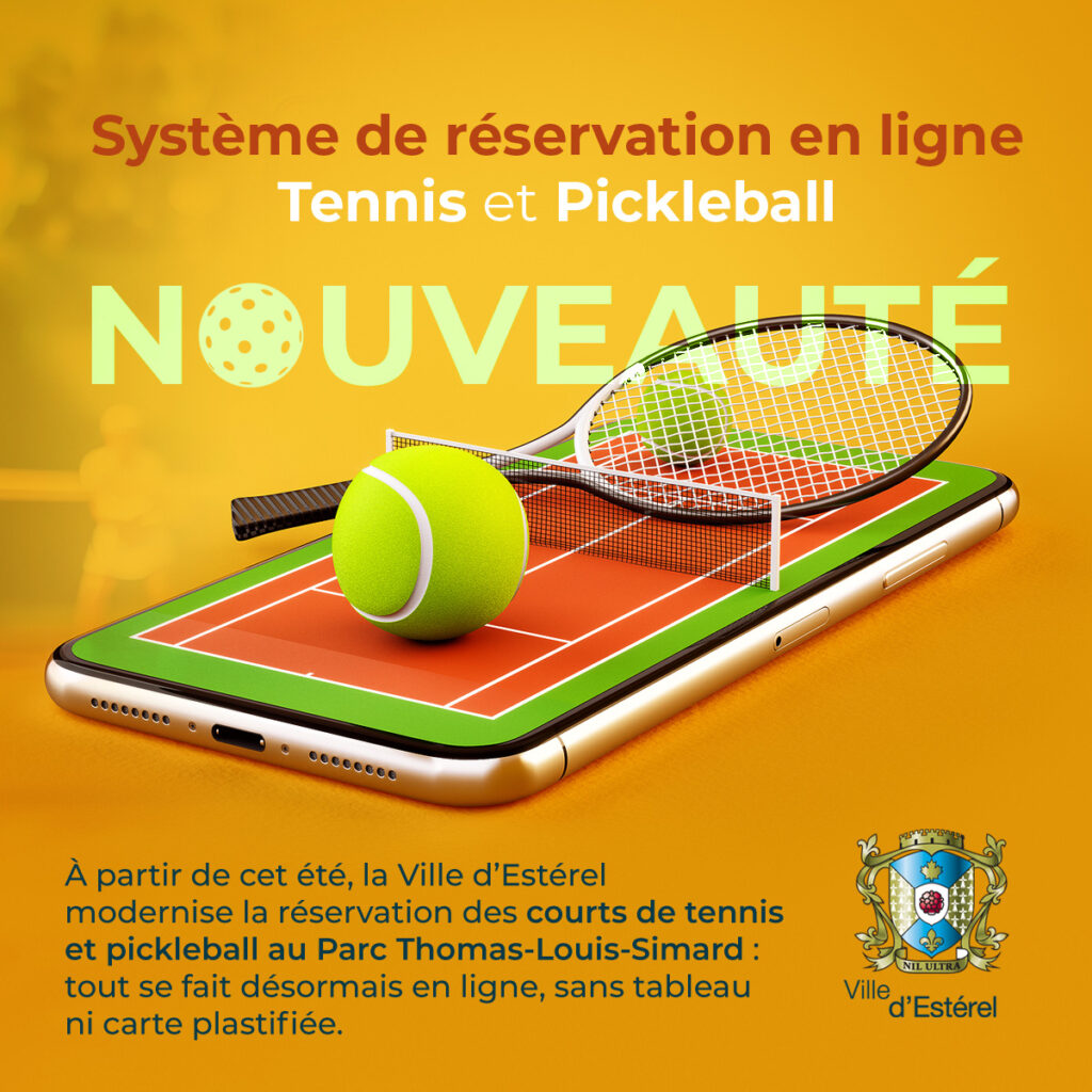 À compter de cet Ă©tĂ©, la Ville d’EstĂ©rel modernise le systĂšme de rĂ©servation des courts de tennis et de pickleball au Parc Thomas-Louis-Simard. Il n’y aura plus de tableau de rĂ©servation ni de carte plastifiĂ©e : tout se fait maintenant en ligne.